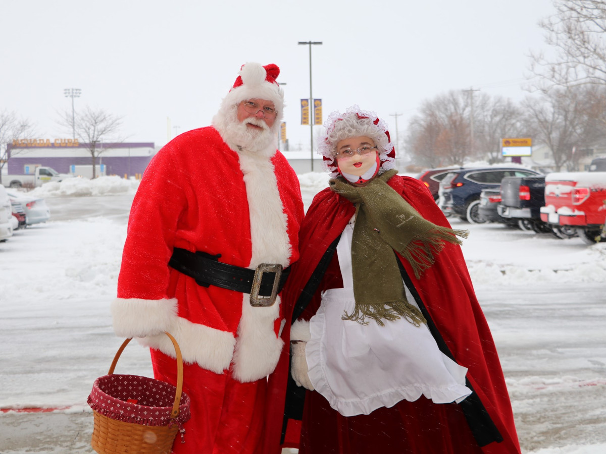 Santa and Mrs. Claus (AKA Kris and Debbie Corbin) pose for a picture while greeting drive-thru participants in this past Saturday’s Parks and Rec event,