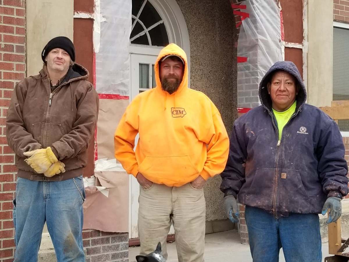 Pictured are (from left) Craig Valline, Jim Potter, Merlin Mendez and (in front) Ojo. Right before the Thanksgiving holiday, work was happening on the front