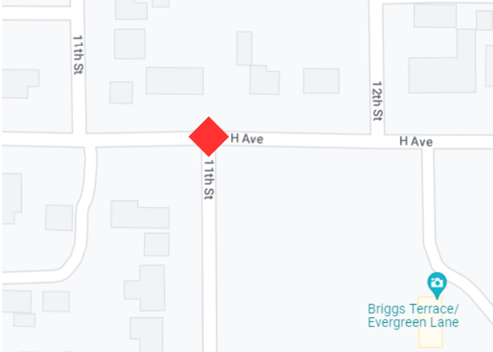 The red square represents the intersection where a three-way stop will soon be put in, if the City Council approves two more readings of a