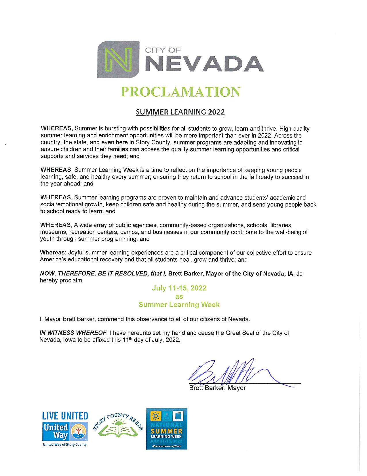PROCLAMATION SUMMER LEARNING 2022 WHEREAS, Summer is bursting with possibilities for all students to grow, learn and thrive. High-quality summer learning and enrichment