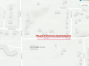 Department leaders anticipate the closing of west E Avenue from Highview Street to the First Christian Church driveway on W. E Avenue during this fire training. This will create a little inconvenience for travelers on W. E Avenue, but it is important with such dangerous real training that we keep the public out of the roadways near apparatus which may be parked on the road.
