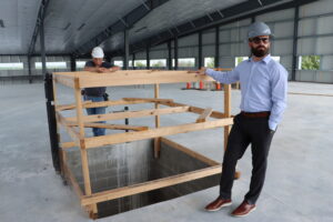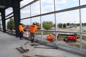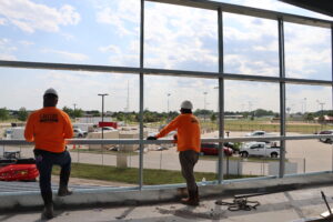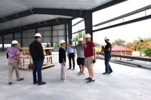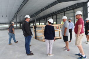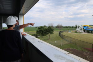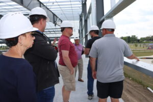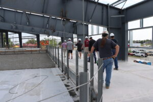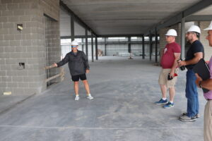 Those on the tour, which also included City Administrator Jordan Cook, comments how big the facility really is once you are standing in the space. Also fun for the participants was to look out of where the windows will be on the upper-level walking track and see the beautiful views from there of the aquatic center, baseball field, the City looking west and the countryside looking east.