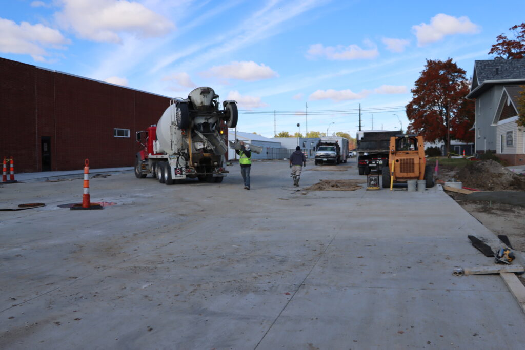 The mainline paving in the first block north of Lincoln Highway is complete, and mostly sidewalk/brickwork remains. Merrigan said they hope to pour concrete from M to N Avenue early this week before more rain is forecasted to hit Thursday.