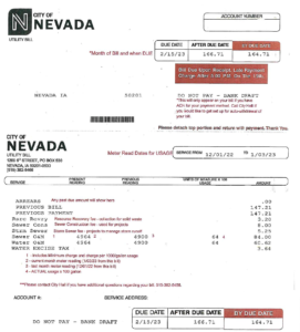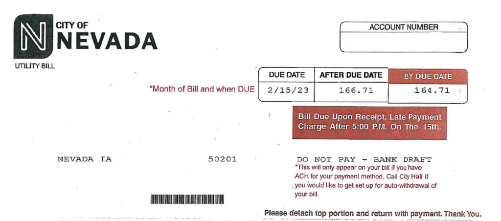 IF YOU DO NOT UNDERSTAND YOUR USAGE, YOUR RATES OR ANYTHING ELSE ABOUT YOUR BILL, STOP IN AT CITY HALL DURING REGULAR WORKING HOURS, OR CALL 515-382-5466, AND WE WILL BE HAPPY TO GO THROUGH AND HELP YOU UNDERSTAND YOUR BILL.
